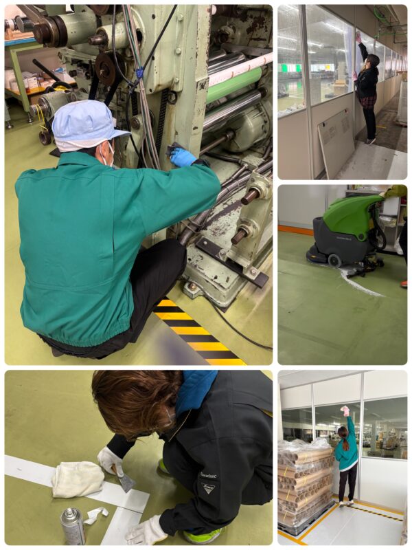 工場では機械のメンテナンスを含めて隅々まで掃除点検をしたり