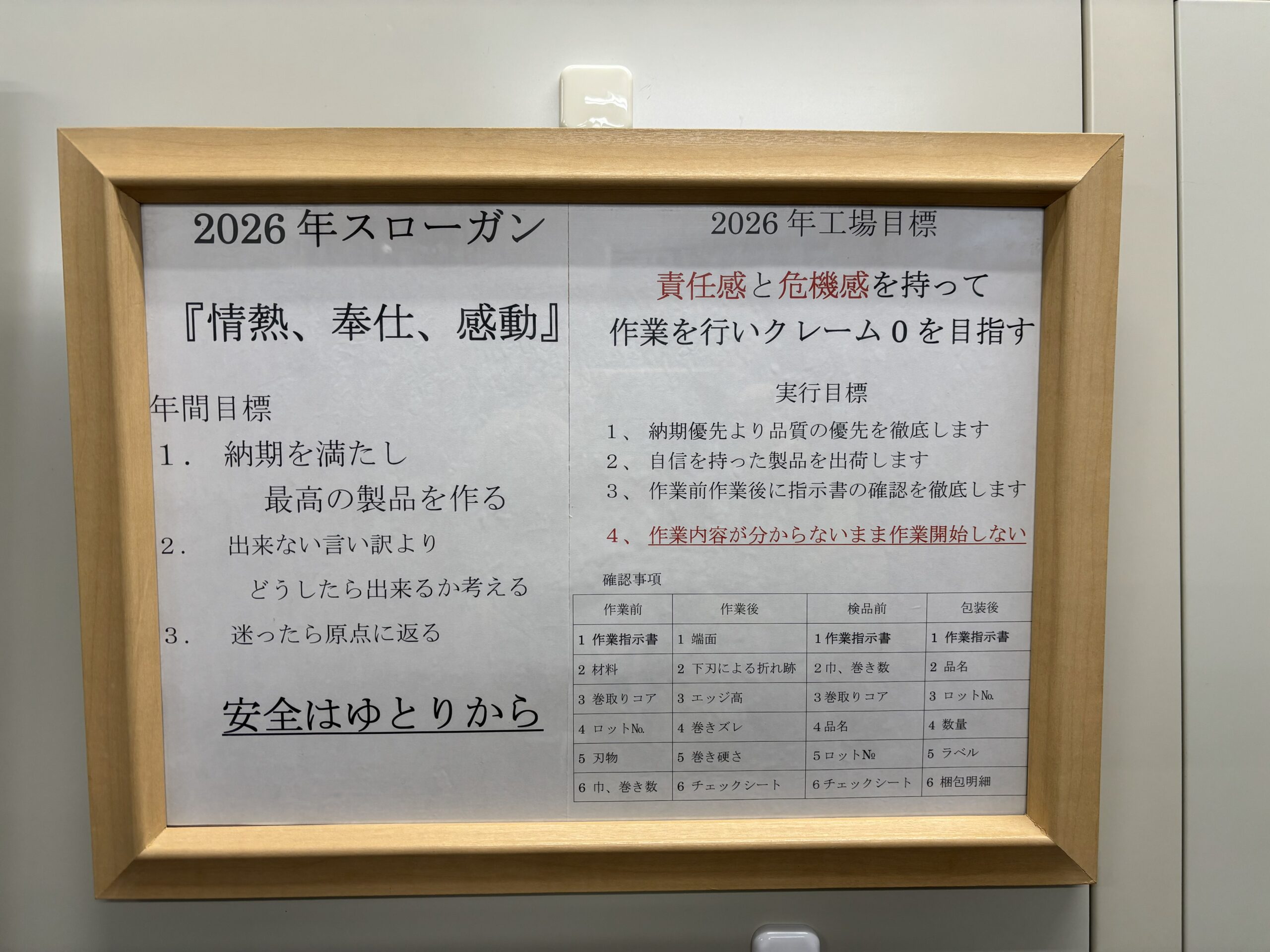 スローガン・工場目標・実行目標・厳禁順守事項